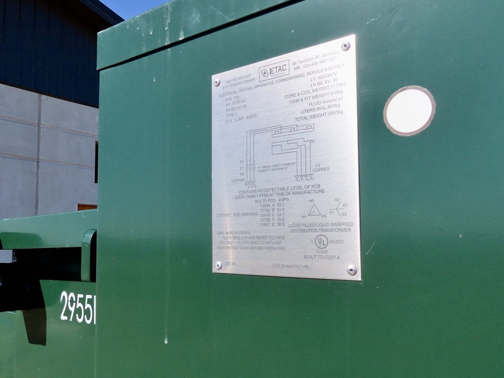 12.47kV Padmount Transformer Nameplate