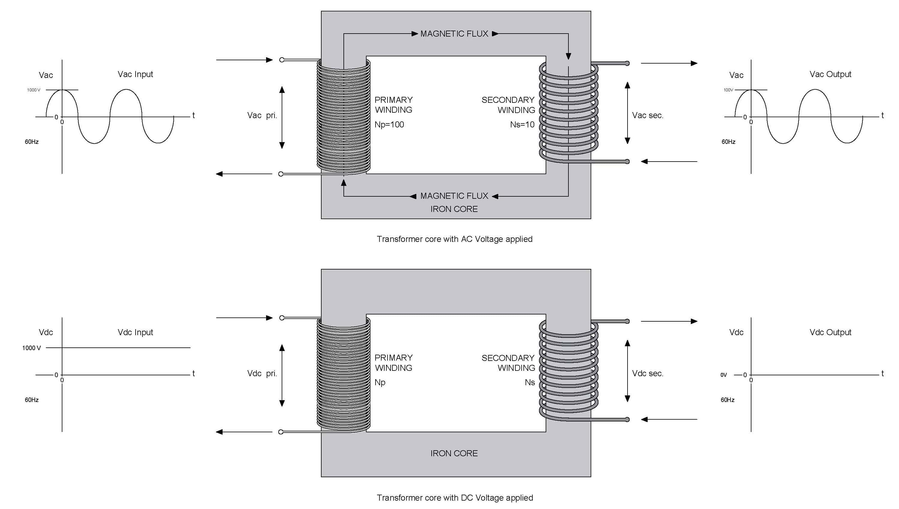 When DC voltage is introduced to a transformer’s primary winding, it disrupts the core principle of electromagnetic induction. Unlike AC, which generates a magnetic field that continuously changes direction, DC voltage creates a static magnetic field. As a result, the transformer cannot function as intended.